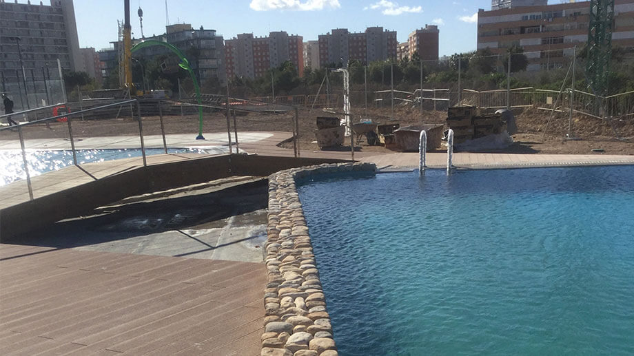 - Piscinas exteriores para adultos y niños con zona de juegos acuáticos.